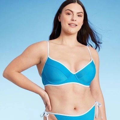 Give your swim wardrobe a comfy, stylish update with this Lightly-Lined Ribbed Underwire Bikini Top from Shade & Shore™. The bikini top is crafted from soft and stretchy fabric to take you through any waterside excursion in absolute comfort. The molded cups with underwire help provide subtle shaping for comfortable, confident wear, while the back hook-and-loop closure and adjustable straps provide a customizable fit.