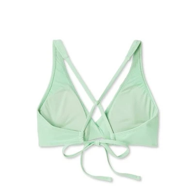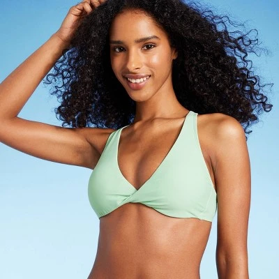 Add summery hues to your swimwear with this Twist-Front Bralette Bikini Top from Shade & Shore™. Made from stretchy fabric for flexible comfort, this bralette bikini top in a soft green color features a twist-front design for an on-trend look. The crisscross straps on the back with a tie closure provide a secure fit, while the removable cups offer customizable coverage. Wear it with a matching, contrasting or printed bikini bottom to complete your swim look.