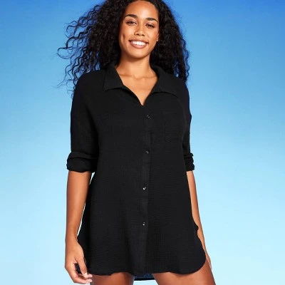 Elevate your swim closet with the casual-chic style of this Button-Up Cover-Up Shirtdress from Shade & Shore™. The slightly sheer solid-color shirtdress is made with soft cotton fabric for breathable comfort. Designed with long sleeves, this cover-up shirtdress comes with a collared neckline and front button-down style for a timeless look and easy layering over all types of swimsuits.