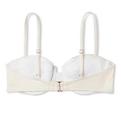 Add a pretty touch of texture to your waterside look with this Crochet Detail Underwire Bikini Top from Shade & Shore™. This off-white bikini top features a supportive underwire design that’s detailed with dainty crochet work for charming flair. The back hook-and-loop closure and shoulder straps ensure a secure, worry-free fit, while the removable cups offer the customizable coverage you desire. Pair with the available matching bikini bottom for a coordinated look, or with other swim bottoms for an endless array of styling options.