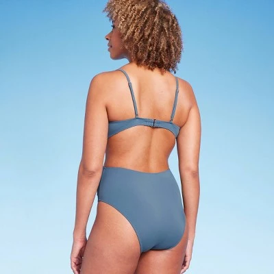 Hit the pool or beach in style with this Plunge Cut-Out Bead Detail Extra-Cheeky One-Piece Swimsuit from Shade & Shore™. This one-piece swimsuit in a dusty blue hue offers cheeky seat coverage. Made from stretchy fabric for ease of movement, it sports a plunge cutout design with bead accents for chic style. The removable cups offer customizable coverage, while the adjustable shoulder straps and back hook closure make it easy to find just the right fit. Complete your look with a sarong or cover-up and accessorize with a pair of sunglasses and flip-flops.