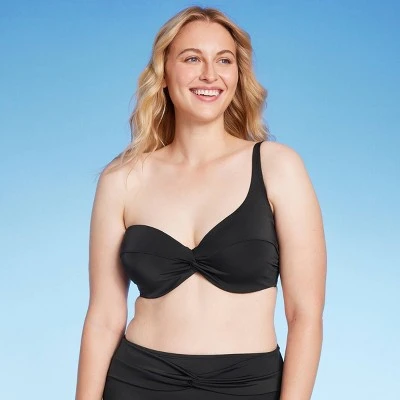 Flaunt your unique style on your next tropical vacation with this Lightly-Lined Twist-Front One-Shoulder Bikini Top from Shade & Shore™. Fashioned in a black hue with a one-shoulder neckline, this twist-front bikini top offers the perfect top half to your swim looks. Crafted from a soft and stretchy fabric blend, this one-strap bikini top features a back hook closure for a comfy, secure fit, while the lightly-lined molded cups with underwire offer light lift and structure. Pair with any solid or printed swim bottom for instant poolside fashion.