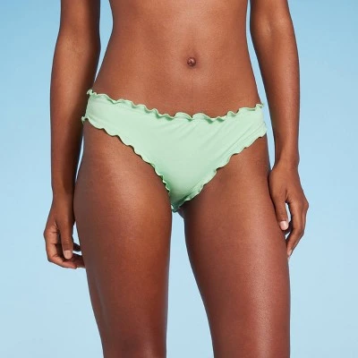 Add dressy frills to your swimwear with this Low-Rise Ruffle Cheeky Bikini Bottom from Shade & Shore™. This hipster bikini bottom in a solid color features a low-rise, cheeky silhouette with cinched styling at the back, along with ruffles on the edging for a sweet finish. The stretchy fabric with elastic at the leg openings provides comfortable movement, and the opaque construction offers coverage for confident wear. Pair them with a matching bikini top to complete your coordinated swim style.