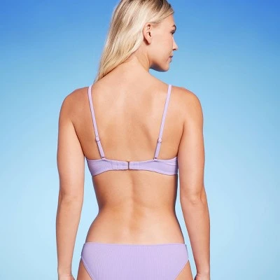 Enjoy the beach or pool in fabulous fun style when you wear this Ribbed Bikini Top from Shade & Shore™. The ribbed bikini top is made from a soft, stretchy fabric that offers you flexible movement whether you are swimming laps or lounging poolside. Designed with a back hook-and-loop fastener for a comfy fit, the bikini top features underwire, molded cups to provide subtle shaping, while the removable padding and adjustable straps offer the customized coverage you desire. Wear it with matching bottoms and your favorite beach accessories to finish the look.