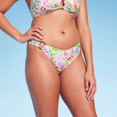This Multi Floral Print Side Ring High-Leg Cheeky Bikini Bottom from Shade & Shore™ brings colorful, botanical charm to your swimwear collection. It features a cheeky low-rise silhouette with a high-leg design, along with a metal ring detail on one side for a chic touch of shine. The soft, stretchy fabric provides comfortable movement, and the fully lined opaque construction offers plenty of coverage for confident wear. Pair with a matching bikini top for a coordinated set or with other swim tops for an endless array of styling options.