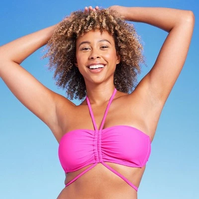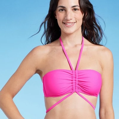 The Strappy Halter Bandeau Bikini Top from Shade & Shore™ makes the perfect addition to your beach-day attire. The bikini top features a bandeau cut with center cinched and strappy detailing for a fashion-forward look you’ll love when you’re by the water. The bandeau bikini top is made from a soft fabric with added spandex that offers you flexible movement whether lounging poolside, taking a stroll along the shore and more. Removable cups let you adjust to your preferred level of coverage, while the back hook closure and ties keep the top secured. Simply pair with a variety of bikini bottoms to create a range of swim looks you’re sure to love.